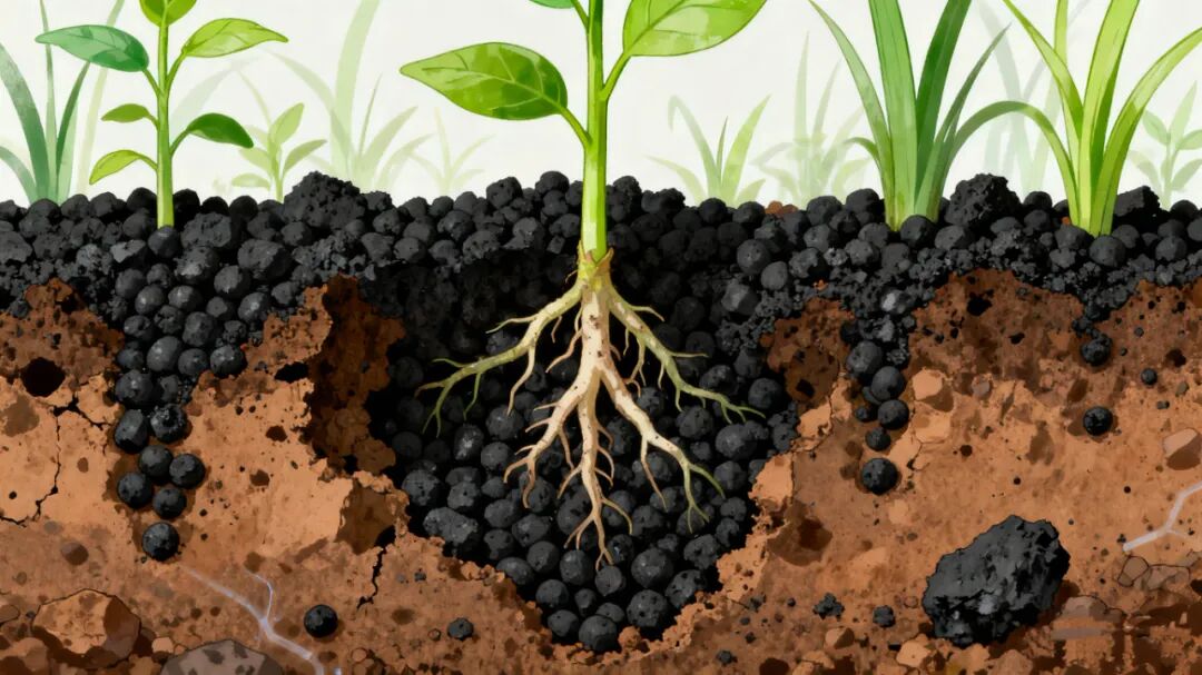兼具修复与增效功能,涵盖炭基肥料(以生物炭为载体,提高肥料利用率)、土壤改良剂(调节土壤酸碱度,吸附污染物,改善通气性),适用于盐碱地、退化土壤修复。