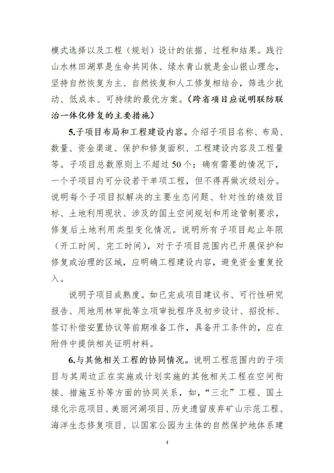 自然资办函〔2026〕282号 一、支持重点 山水工程项目着眼于国家重点生态功能区、国家重大战略重点支撑区、生态问题突出区等,坚持保护优先、自然恢复为主,支持重点生态地区统筹推进山水林田湖草沙综合治理、系统治理、源头治理,筑牢国家生态安全屏障。 二、申报条件和数量 各省(自治区、直辖市,以下统称省)自然资源、生态环境、财政部门要统筹规划、统一组织全省项目申报。“十五五”期间第一批山水工程项目,将统筹考虑项目成熟度,按以下排序优先支持: (一)跨省域项目。两个或两个以上相邻省可联合申报1个跨省域项目(每省仅能与其他省联合1次)。新疆生产建设兵团可联合新疆维吾尔自治区参照跨省域共同申报1个项目。 (二)省内区域项目。“十四五”未安排项目和已如期完成“十四五”山水工程项目验收且截至申报日期前经自然资源部商生态环境部备案通过的省可申报1个省内区域项目。 具备项目申报资格的省每次仅能选择申报1个跨省域项目或省内区域项目。未能如期完成“十四五”项目验收的省暂不得申报省内区域项目,可申报跨省域项目,但支持优先序排在其他省的跨省域项目之后。 三、申报审核程序 (一)组织编制项目实施方案。各省自然资源、生态环境、财政部门应围绕国土空间规划、全国重要生态系统保护和修复重大工程总体规划等确定的重点区域、任务,立足生态系统整体性和自然地理单元完整性,统一规划、整体设计,因地制宜开展治山、理水、营林、护田、清湖、丰草、固沙、降污、减灾等综合治理,强化与“三北”工程等生态治理重点任务协同,符合山水工程负面清单管理有关要求,统筹考虑工作任务、财力情况等报省政府同意后确定申报项目,组织编制项目实施方案,严格项目审核,重点关注项目必要性、科学性、目标和投资合理性等。项目建成后应长期稳定运行,持续发挥效益,对无法保障后续运维的项目,原则上不予支持。实施方案中要对项目进行全生命周期管理规划,阐述建成后的持续运营方式、管理维护责任主体、技术支撑能力等,明确项目在当期建设、后续运维等阶段的资金来源和安排,保障生态系统质量持续改善。 项目实施期限自工程设计备案通过之日起算,原则上不超过36个月,项目总投资不低于20亿元。各地要科学组织项目,合理筹措资金,避免新增政府隐性债务。省级财政要加大投入力度,提高统筹投入资金比例,切实减轻基层财政负担。各地可按规定统筹整合资金,形成支持合力,统筹整合的中央财政资金应当避免重复投资,不得投入相同区域、相同治理内容的同一子项目。 (二)按时提交项目申报材料。各省自然资源主管部门商生态环境主管部门批复项目实施方案,并会同生态环境、财政部门于2026年4月15日前将正式申报文件报自然资源部、生态环境部、财政部,同时将申报文件、批复的实施方案等项目申报材料电子版通过中央财政自然资源领域转移支付资金项目库项目申报模块报送,不再提交纸质材料。严格遵守相关保密规定,申报材料不得包含涉密内容。涉及有国家管控要求的事项,应按规定提供相关批复文件、协议书或当地政府部门承诺函等证明材料。 (三)分步开展项目审核批复。自然资源部商生态环境部对项目实施方案进行审核。各省自然资源主管部门商生态环境主管部门根据审核意见,组织调整实施方案,同时及时组织编制项目工程设计,一并报自然资源部商生态环境部复核。跨省域项目需9月15日前完成编制上报,省内区域项目需按规定尽快完成。 各省自然资源主管部门商生态环境主管部门根据复核意见,组织修改完善工程设计并批复,按要求完成财政预算评审后,报自然资源部商生态环境部备案,备案通过的项目纳入中央财政自然资源领域转移支付资金项目库。跨省域项目应联合组织项目申报、审核、批复。 四、工作要求 (一)中央部门对项目申报实行回避制度。自然资源部、生态环境部、财政部及其所属行政、企事业单位和工作人员不得以任何方式影响、干预或插手地方申报项目选择。存在违反上述规定行为的,各地应立即反映,一经查实,或存在其他滥用职权、玩忽职守、徇私舞弊等违法违规行为的,将依法追究相应责任。 (二)地方部门要压实项目各方主体责任。各省自然资源主管部门会同生态环境、财政部门应当做好项目申报审核工作,提高项目申报质量。要积极协调配合,切实加强部门协同、地区协作,充分发挥省级部门在项目组织、资金管理方面的统筹作用。要规范项目申报审核程序,严格把关,从严审核项目建设内容、绩效目标等,加强财政预算评审,严控项目质量。要按职责分工对申报内容的真实性、准确性、完整性负责,确保项目不包含负面清单内容,并在申报文件中予以明确。 附件 : 文章来源:自然资源部 来源:自然资源部 作者:自然资源部 编辑:刘孟飞 审核:高杰 审签:高杰 投稿邮箱:china_soil@163.com 协会官网:http://www.c-soil.com/ 免责声明:遵循微信公众平台关于保护原创的各项举措。若涉及版权问题,请原作者留言联系我们。经核实后,我们会及时删除或者注明原作者及出处。 期待评论区下方留言-分享你的观点呦 土盟简介 土盟业务 土盟简介 土盟全称“中关村众信土壤修复产业技术创新联盟”,英文缩写“CSER”,是由中关村国家自主创新示范区内的科研